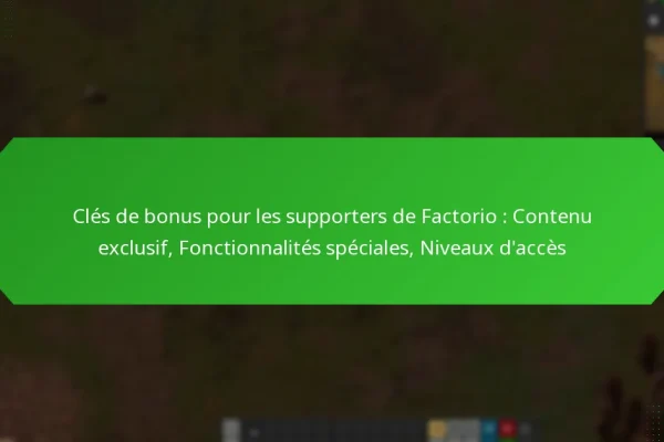 Les clés de bonus de soutien Factorio sont des récompenses exclusives pour les joueurs qui contribuent financièrement au développement du jeu. En participant à des événements communautaires, en faisant des dons ou en s’engageant dans des projets, les joueurs peuvent gagner ces clés, qui améliorent leur expérience de jeu. Le jeu propose différents niveaux de…