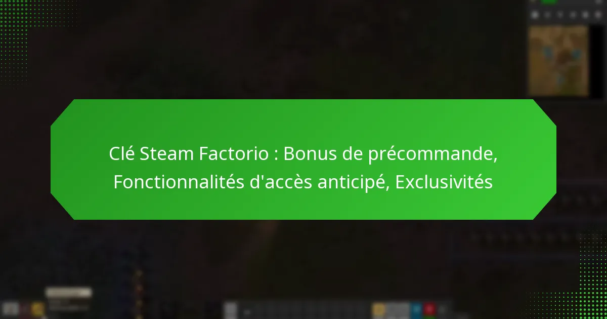 La précommande de la clé Steam de Factorio offre aux joueurs des bonus exclusifs, y compris des objets en jeu et des réductions. Ces incitations sont conçues pour récompenser les premiers supporters et améliorer l’expérience de jeu.